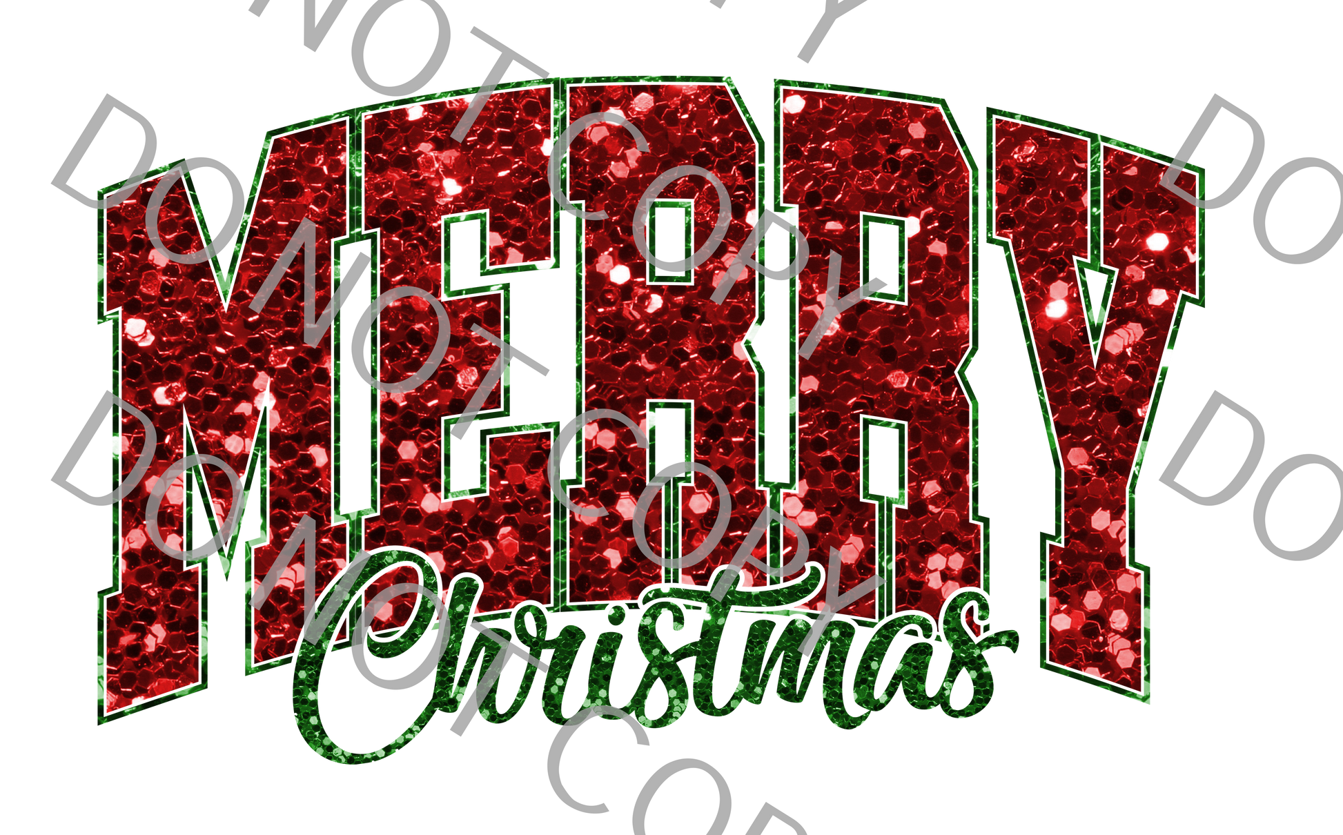 Merry Christmas faux glitter 12in x 7.5in (DTF print only)
